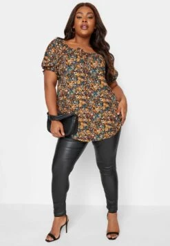Floral Print Puff Sleeve Gypsy CamicettaBurnt Orange Donna Camicie E Bluse YOD21D0VZ-H11