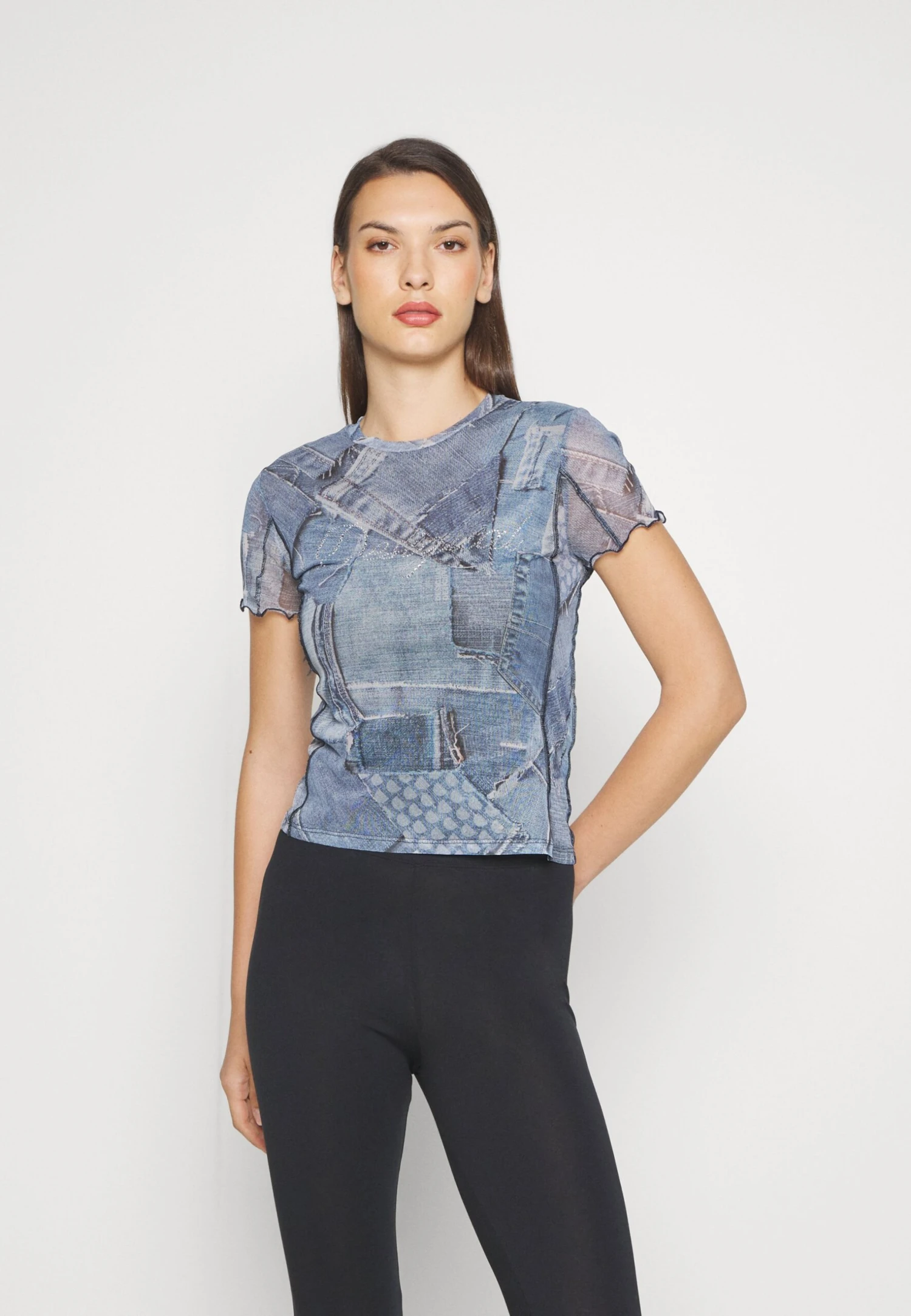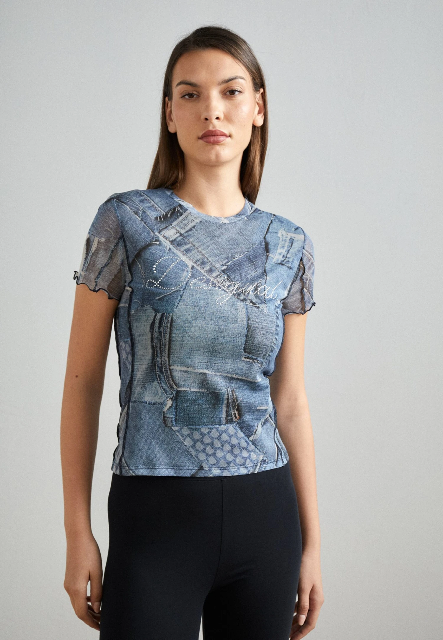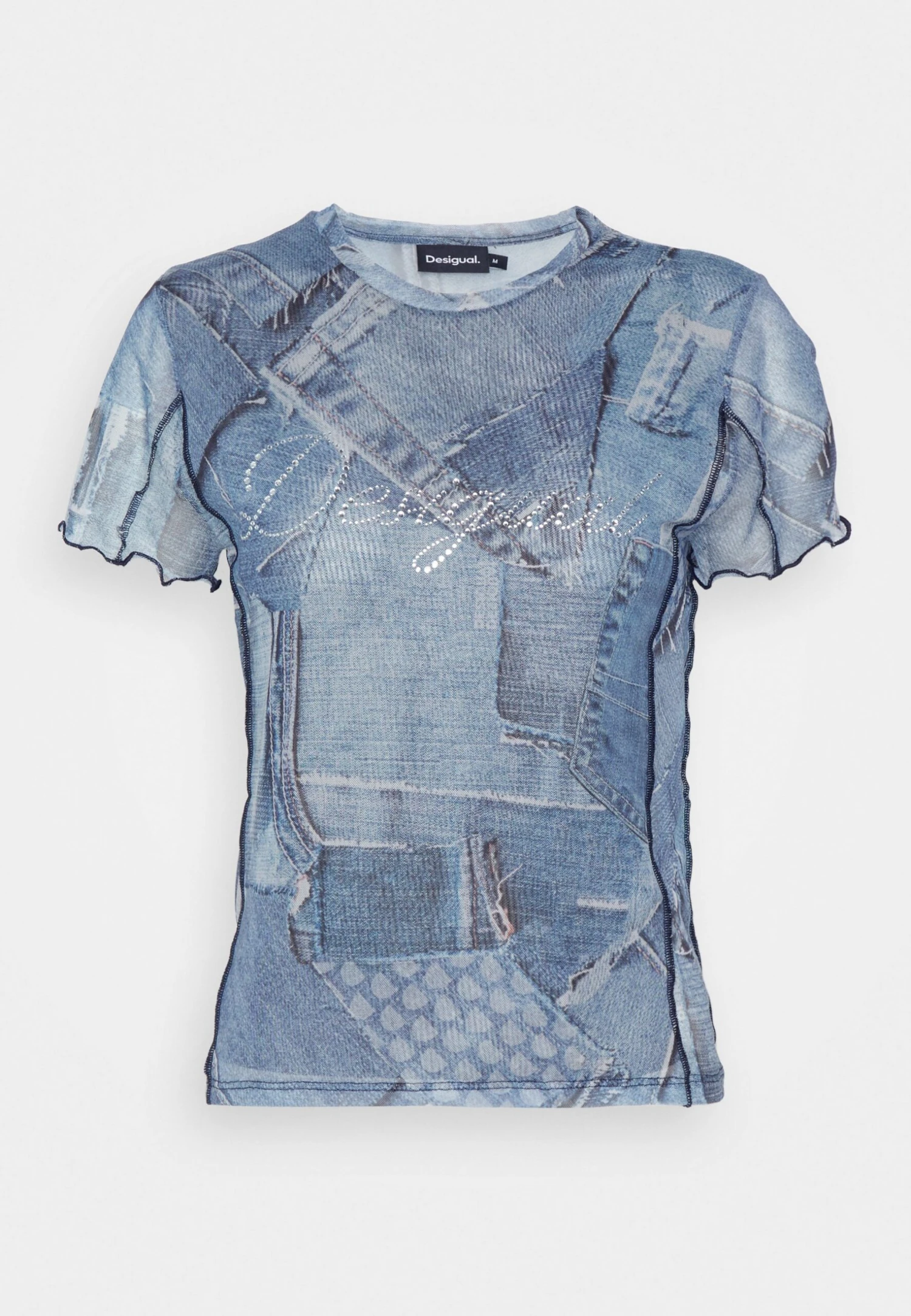 Desigual StrassT-Shirt Con StampaDenim Raw Donna T-shirt E Top DE121D10I-K11