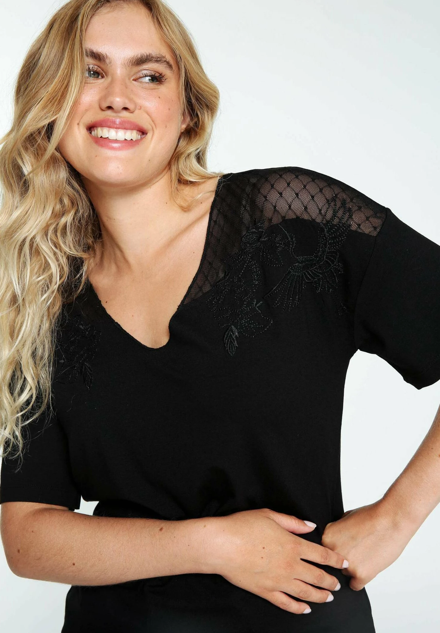 Ts Mc Col V Détail TransparenceT-Shirt Con StampaBlack Donna Camicie E Bluse C5E21D0DN-Q11